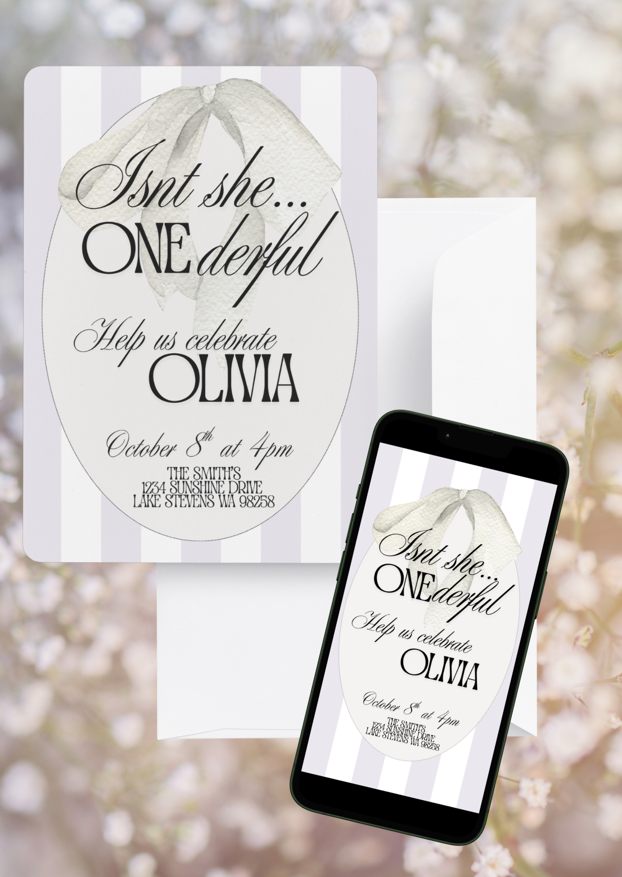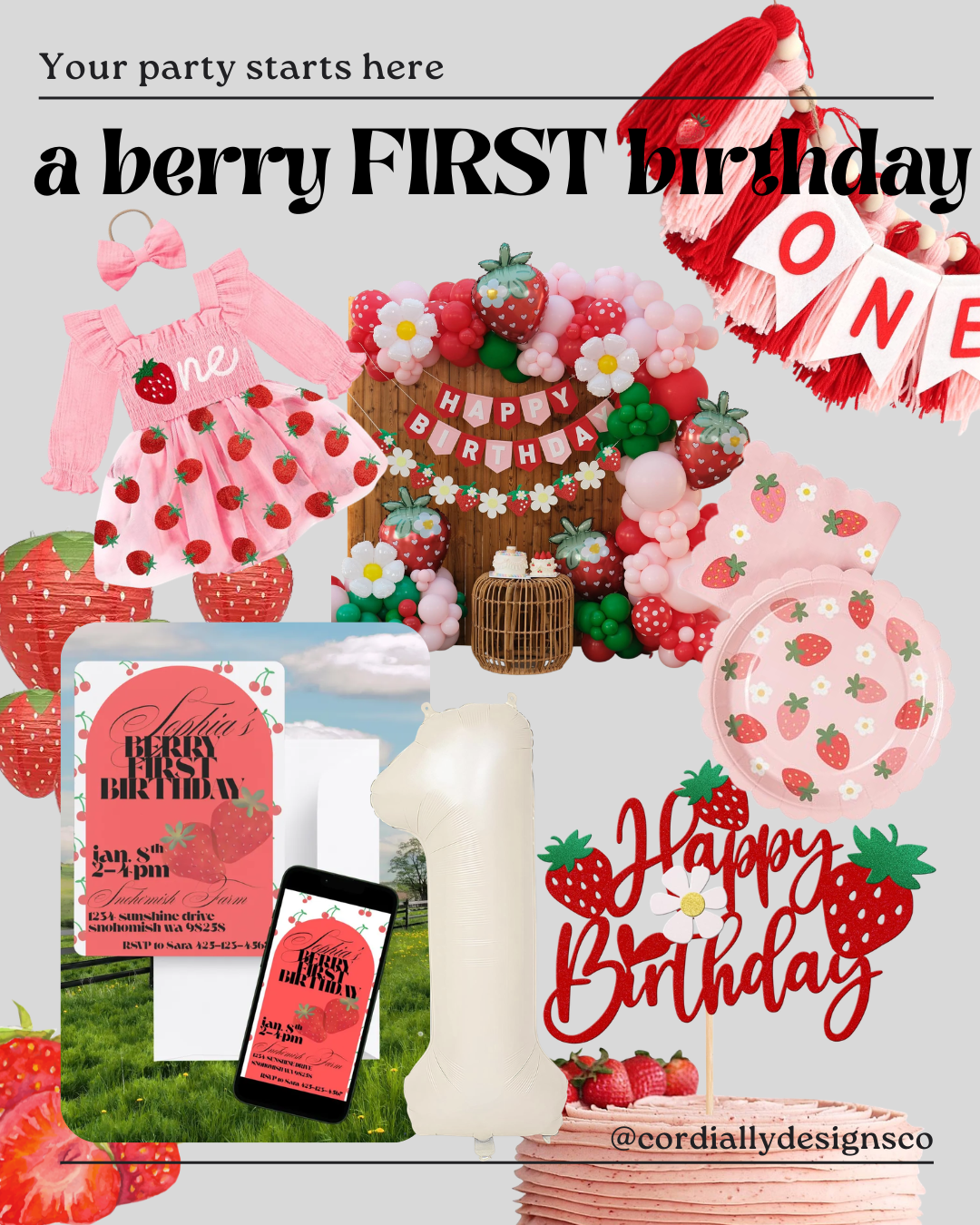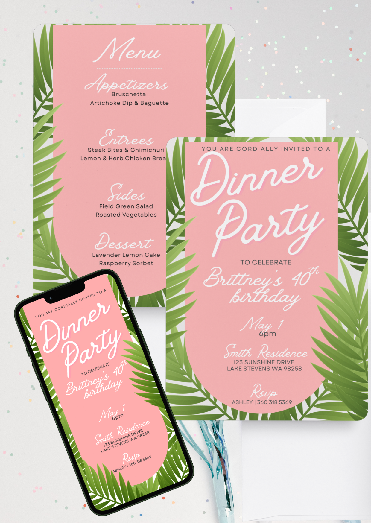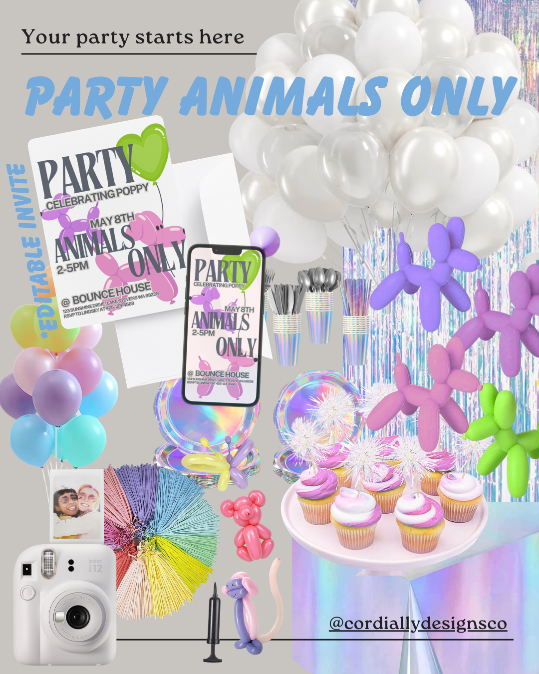 I design modern digital invitations — then link all the cute stuff that goes with them. Balloons. Backdrops. Cake toppers. The good Amazon finds. The things that make it look like you tried (even if you didn’t).