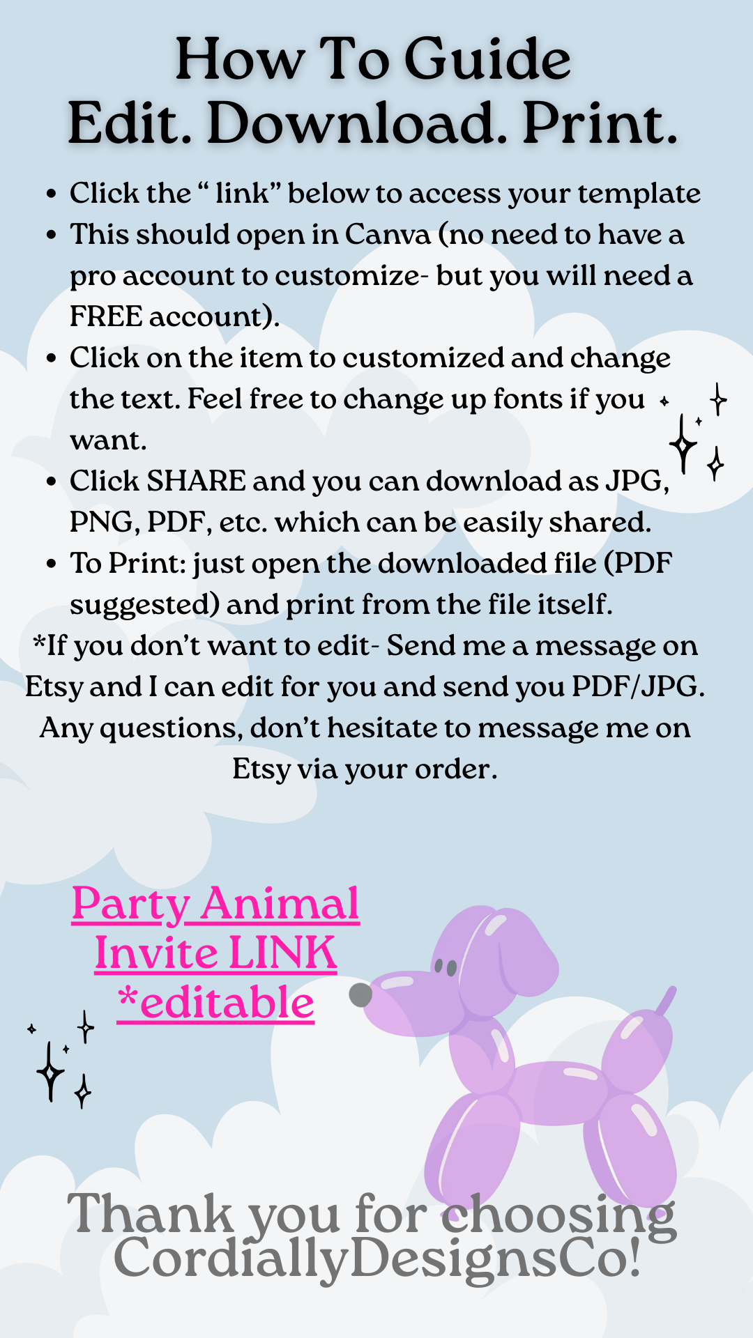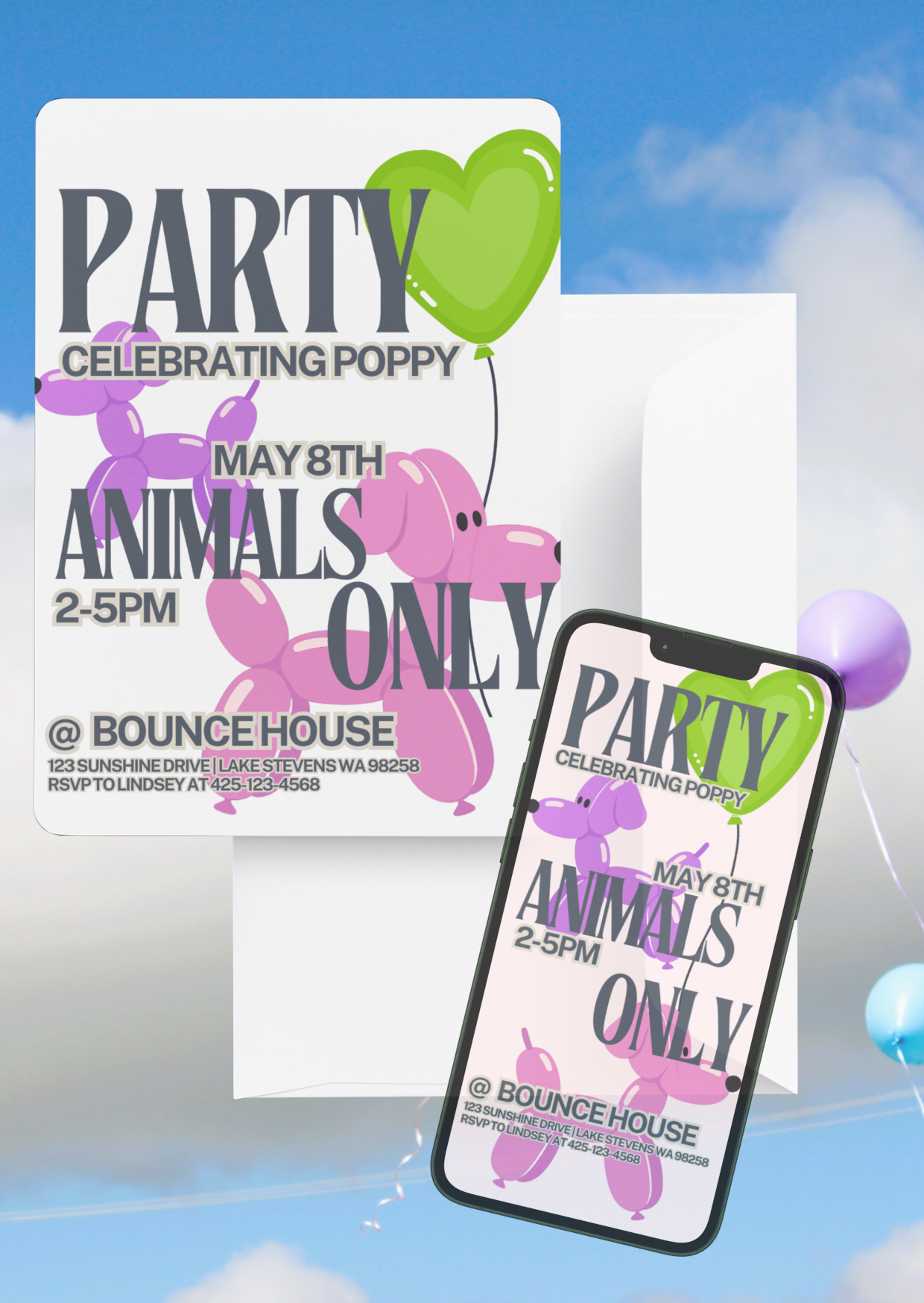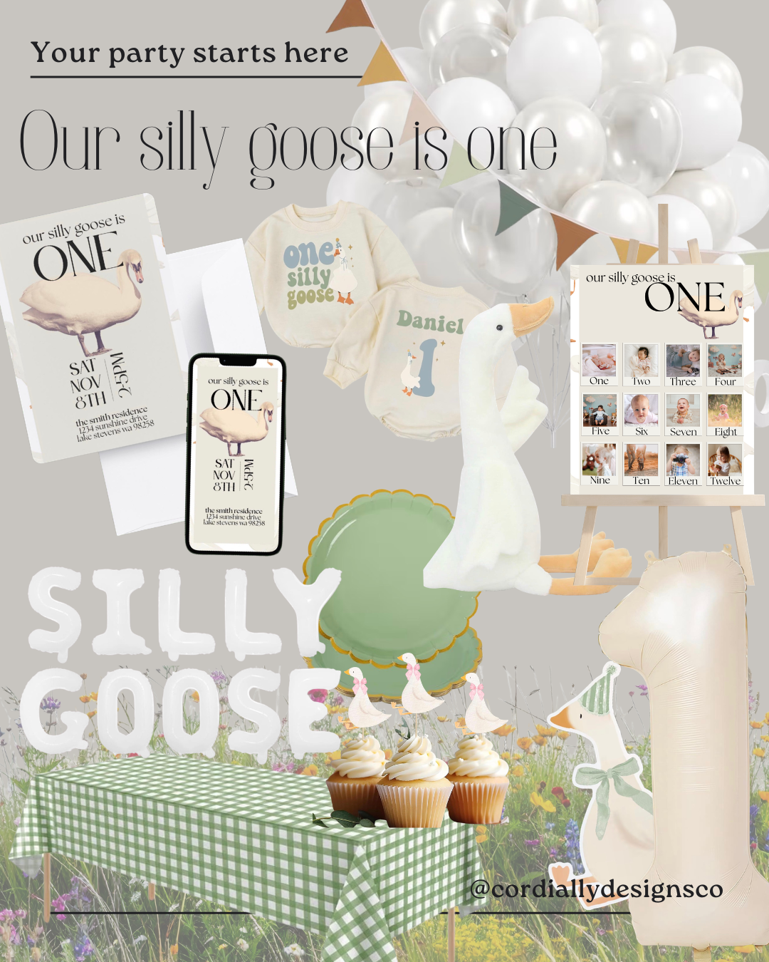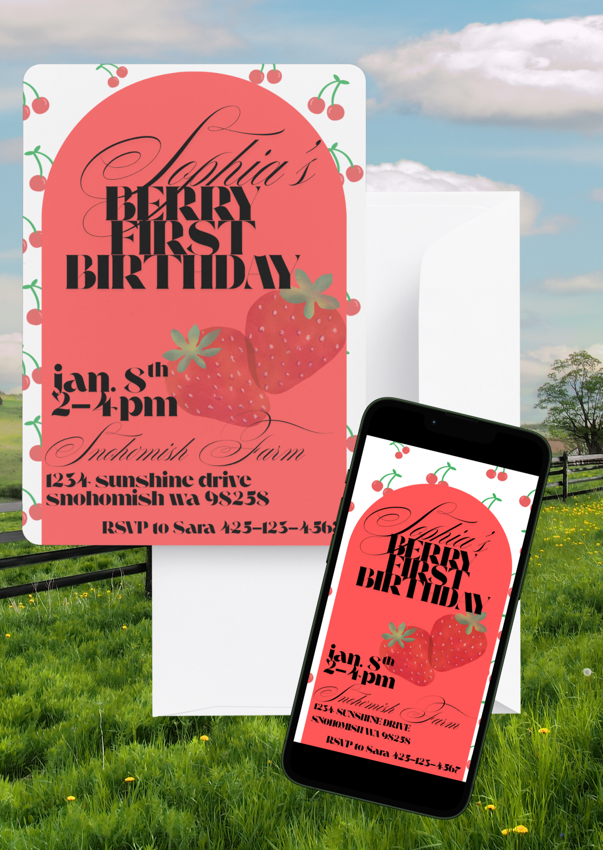 I design modern digital invitations — then link all the cute stuff that goes with them. Balloons. Backdrops. Cake toppers. The good Amazon finds. The things that make it look like you tried (even if you didn’t).